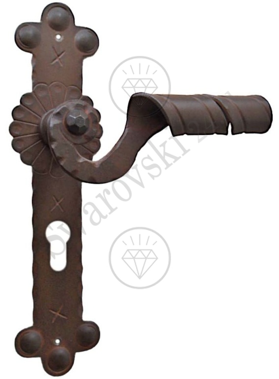 Klamka Abalon 1092 na szyldzie długim z otworem na wkładkę patentową wykonana jest z ręcznie kutego żelaza i dostępna w trzynastu powłokach kolorystycznych. Okucie znajduje zastosowanie do drzwi wewnętrznych. Rozstaw 72 mm.